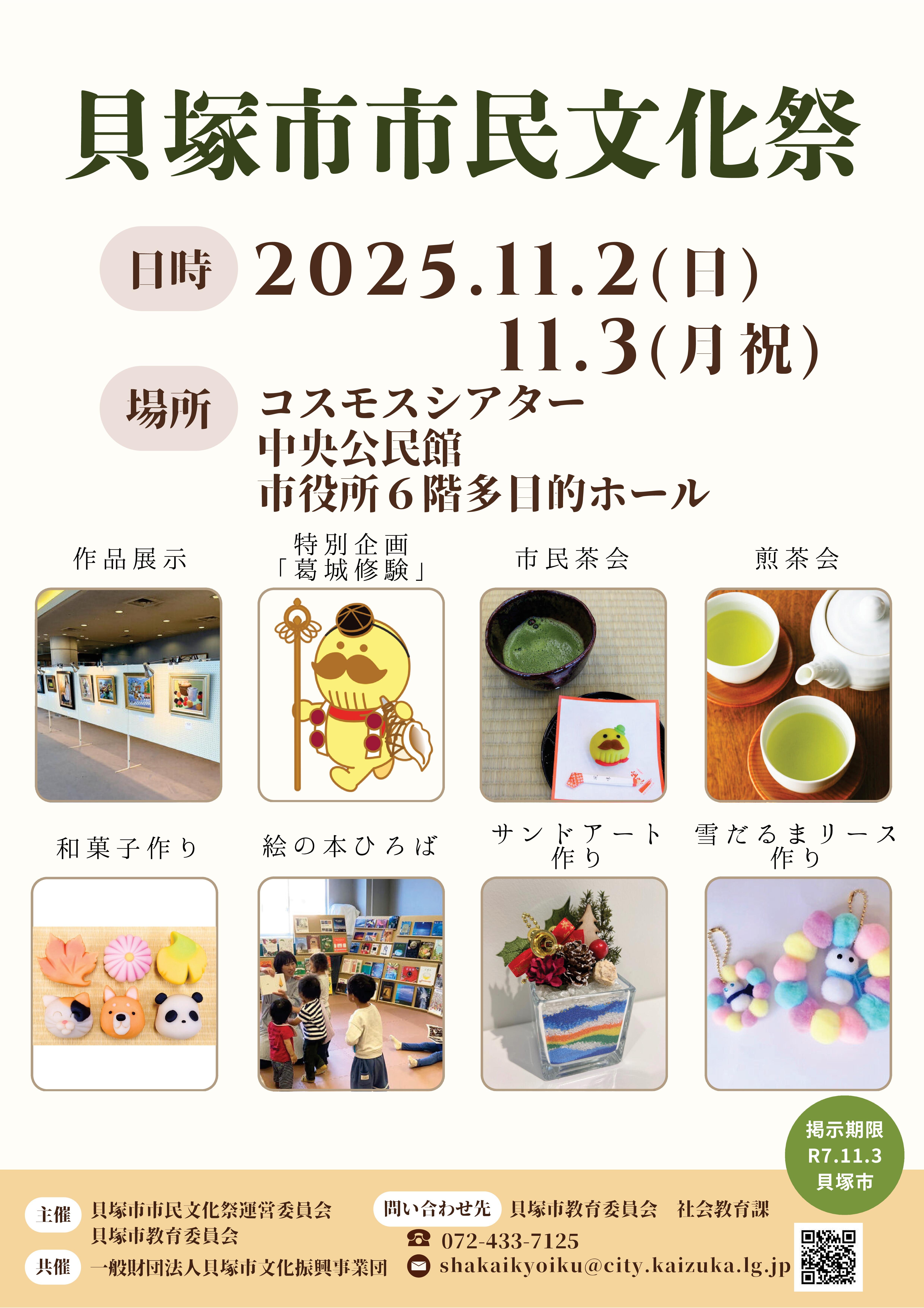下記のとおり開催される、貝塚市「市民文化祭」にて特別企画「葛城修験」と題し、葛城修験についての...
